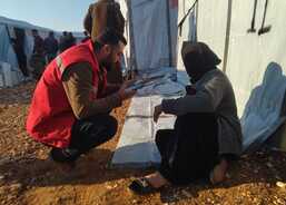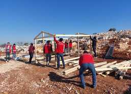 Setting up tents for the most affected by the earthquake in Hezrah, Syria